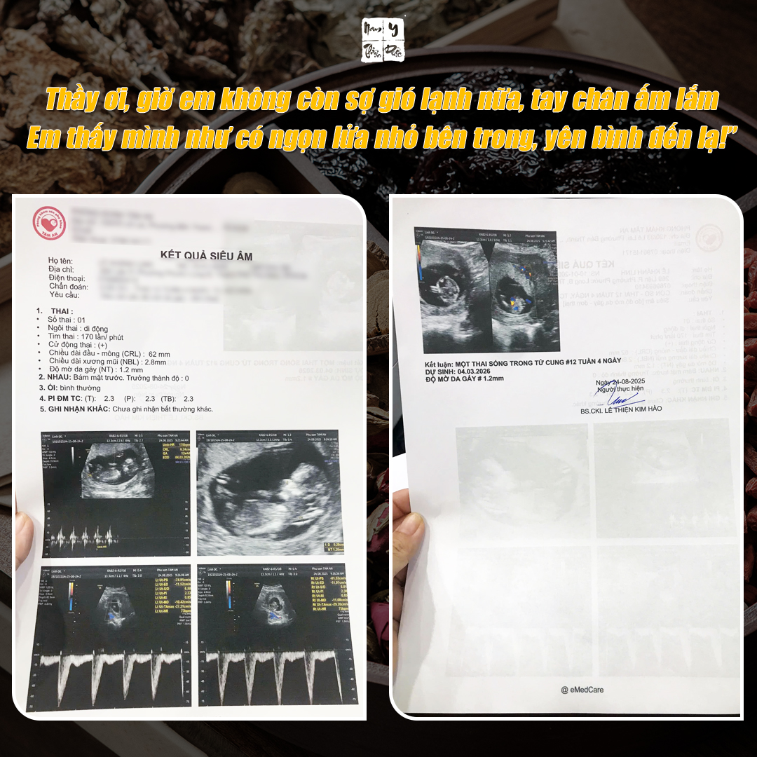 Hôm nay, em trở lại tái khám, bụng mới chỉ nhô nhẹ mà ánh mắt đã tròn đầy. Em cười: “Thầy ơi, giờ em không còn sợ gió lạnh nữa, tay chân ấm lắm. Em thấy mình như có ngọn lửa nhỏ bên trong, yên bình đến lạ!”